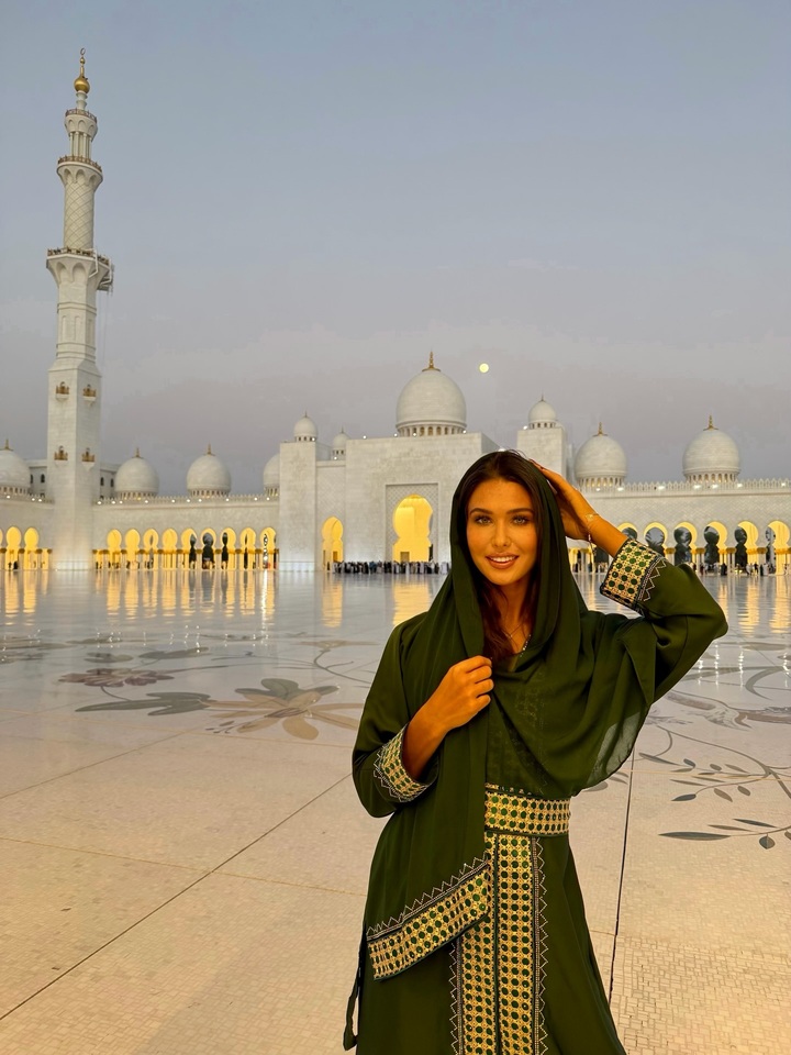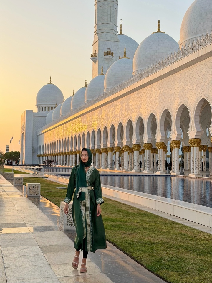 Для посещения мусульманской святыни Дьяченко выбрала подходящий наряд. Спортсменка на время отказалась от подчеркивающих фигуру смелых луков и облачилась в восточное одеяние.